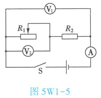8. (★★★) 如图 5W1 - 5 所示,电源电压不变。闭合开关 S,滑动变阻器 $ R_1 $ 的滑片向左移动的过程中,下列说法正确的是 【