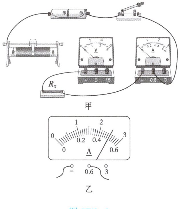 (3) 某次测量时,电压表的示数为 2.5 V,电流表指针位置如图 5W2 - 5 乙所示,则电流表的示数为 ______ A,本次测得 $ R_x $ 的阻值为 ______ Ω。