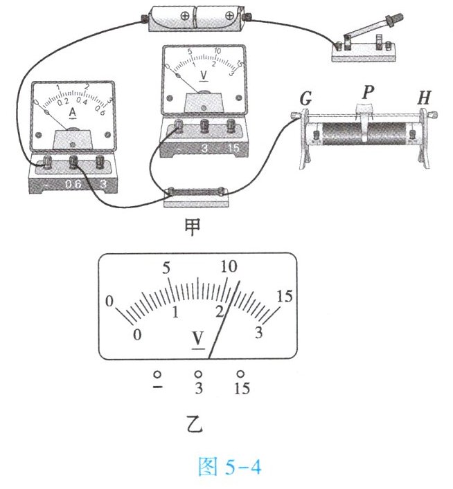 (2) 根据设计的实验电路要求,请用笔画线代替导线完成图5-4甲所示的实物电路。