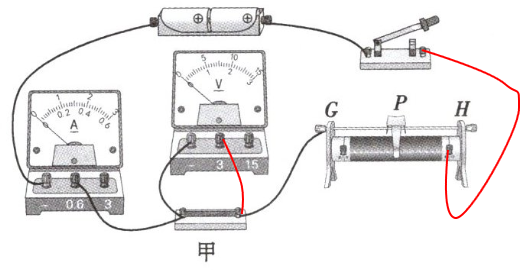 实物电路连接:滑动变阻器接右下接线柱和右上接线柱,电压表并联在定值电阻R两端(正接线柱接R左端,负接线柱接R右端),电流表串联在电路中。