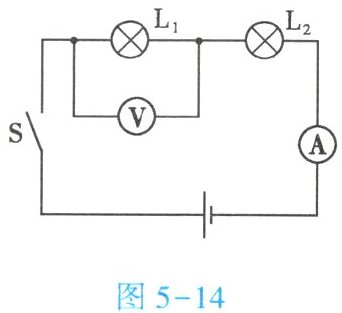 11. (★★★)(双选)两只灯泡串联的电路如图5-14所示,闭合开关$S$后,用电压表测灯泡$L_1$两端的电压时,其示数为4.5V,再用电压表测灯泡$L_2$两端的电压时,其示数为0,则灯泡$L_1$、$L_2$的故障是【