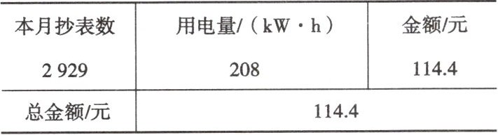 本月用电量为208 kW·h