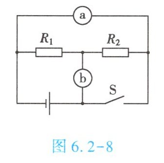 3. (★★★)如图 6.2 - 8 所示,当 a、b 同为电压表,开关 $ S $ 闭合时,两表的示数之比 $ U_a : U_b = 5 : 3 $;当 a、b 同为电流表,开关 $ S $ 断开时,两表的示数之比 $ I_a : I_b = $