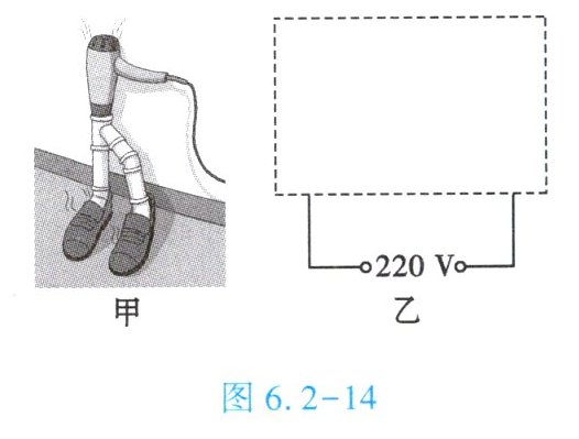 (1)在图 6.2 - 14 乙中的虚线框内画出烘干器内部的电路图。