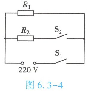 7. (★★★)小军家里有一款高温、低温两挡电烤炉,他查看使用说明书,收集到的一些信息如下:正常工作时的电压为$220V$,低温挡电功率为$880W$,高温挡电功率为$1980W$,电路原理图如图 6.3 - 4 所示($R_{1}$、$R_{2}$代表两根电热丝,$S_{2}$为温控开关)。