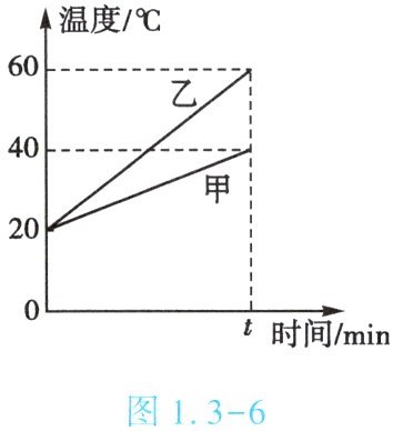 6. (★★★)(双选) 用相同的电加热器分别对质量相等的甲、乙两种液体加热(不计热量损失),如图 1.3 - 6 所示是甲、乙的温度随加热时间变化的图像。下列说法正确的是 【