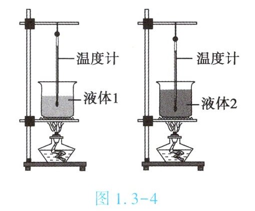 1. (★★)为比较两种液体的吸热性能,小军用图 1.3 - 4 中两个相同的装置做实验,收集的实验数据记录如下表。