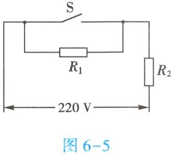 6. (★★★)如图6-5所示是家用电饭锅的工作原理图,已知电饭锅的额定电压为220V,煮饭加热时的电功率为800W,保温时的电功率为加热时的$\frac{1}{8}$。设电路的电压为220V,$R_{1}$、$R_{2}$的阻值不随温度发生变化。