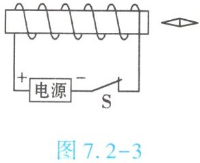 4. (★★)如图 7.2 - 3 所示,开关 S 闭合后,小磁针静止在图示位置,则通电螺线管左端是
