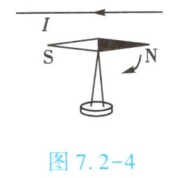 1. (★★)将一根导线平行地拉到静止小磁针的上方,如图 7.2 - 4 所示,当通有电流时,小磁针的 N 极向外偏转。若电流方向改变时,小磁针的 N 极将【