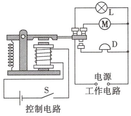 5. (★★)在如图 7.3 - 3 所示的自动控制电路中,当控制电路的开关 $ S $ 闭合时,工作电路的情况是【