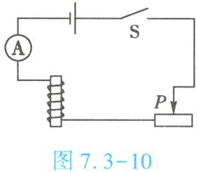 8. (★★)小明要探究电磁铁的磁性强弱跟什么因素有关,现有线圈匝数分别为 50 匝和 100 匝的外形相同的电磁铁,他先后将这两个电磁铁接入如图 7.3 - 10 所示的电路中,闭合开关 $ S $ 后用电磁铁吸引大头针,并移动滑动变阻器的滑片 $ P $,多次实验,记录的数据如下表。
