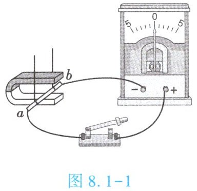 3. (★★★)如图8.1-2所示是探究产生感应电流条件的实验装置,闭合开关,当导体ab向右运动时,灵敏电流计的指针向左偏转。现要指针向右偏转,应
