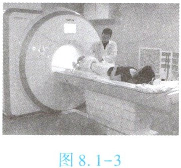 1. (★★★)磁共振成像是一种较新的医学成像技术,它采用强静磁场和变化磁场使人体组织成像,如图8.1-3所示。若携带金属物做磁共振成像,强静磁场会吸引铁质物品,变化磁场会使携带的金属物中产生感应电流,从而使金属物发热而灼伤病人,重则危及生命。上述说明中,没有涉及的知识是【