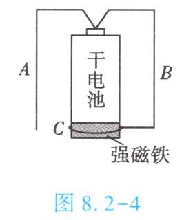 6. (★★★)如图8.2 - 4所示,干电池底部吸有强磁铁(可导电),在干电池的正极上支有一“门”字形导线框,导线框B侧和套在强磁铁上的导电圆环C连接,导线框和导电圆环C能够一起绕干电池持续转动,导电圆环C在转动过程中与强磁铁接触良好。关于导线框转动的动力来源,下列说法正确的是【