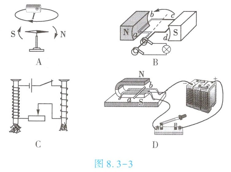 1. (★★)如图 8.3 - 3 所示的实验装置中,与动圈式话筒的工作原理相同的是【