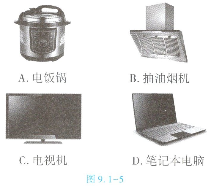 1. (★★)如图9.1 - 5所示,属于电热类的家用电器的是【