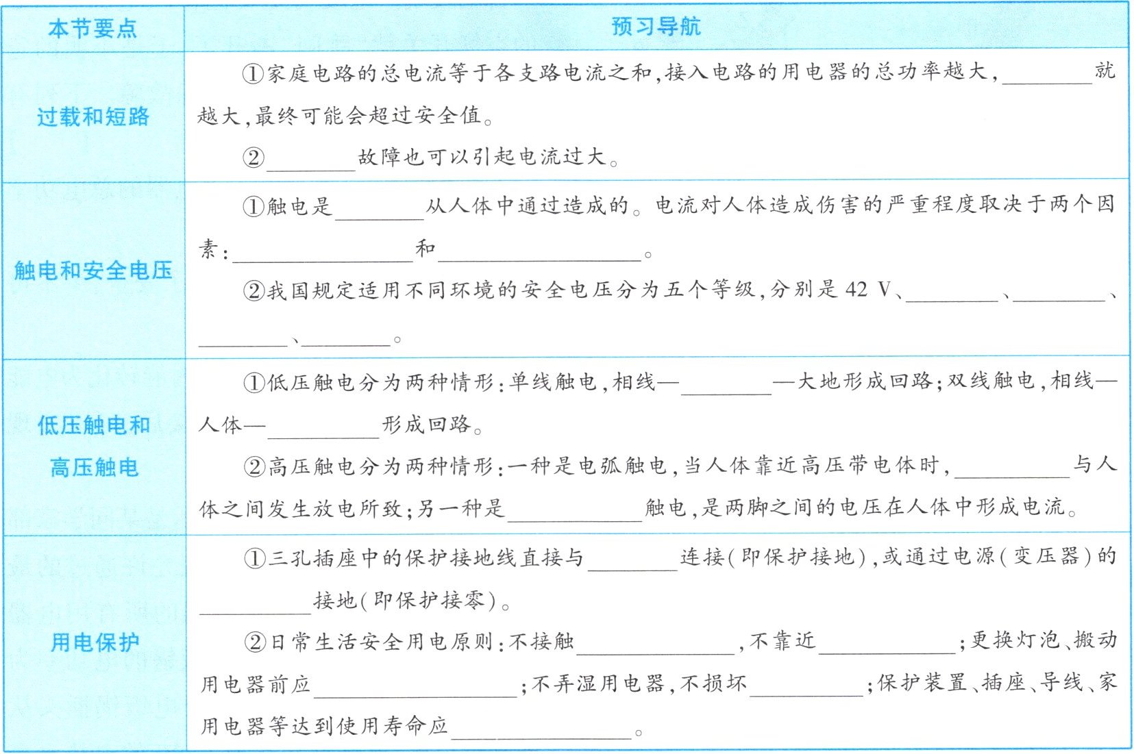 |过载和短路|①家庭电路的总电流等于各支路电流之和,接入电路的用电器的总功率越大,
