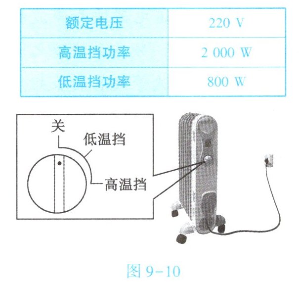 (1)如图9-10所示,电暖器的插头是三脚插头,插头中较长的脚与电暖器的金属外壳相连,插入插座后,就将电暖器的金属外壳与家庭电路的