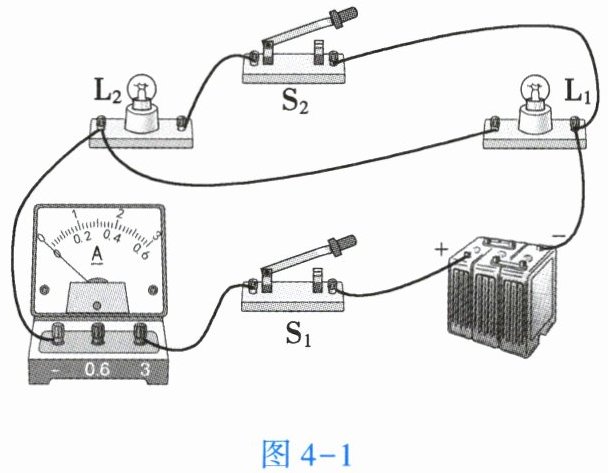 1. 小敏同学在某次实验探究中连接的电路如图4-1所示,开关$S_2$控制的是灯泡