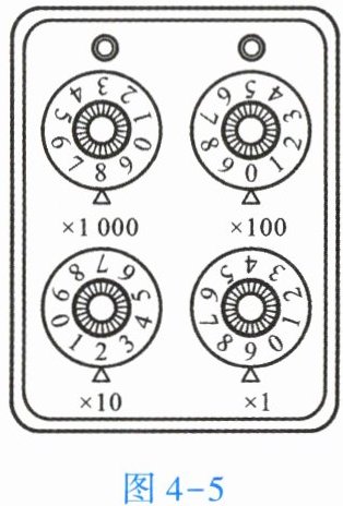 5. 如图4-5所示是实验室常用的电阻箱,使用时调节四个旋钮就能得到0~9 999 Ω范围之间的任意整数阻值。图中所示的电阻箱的电阻大小为