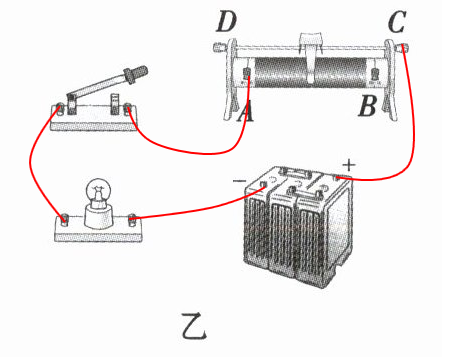 (2)现再给电源、小灯泡、开关各一个,导线若干,请在图4-17乙中用笔画线代替导线连接电路。要求:滑动变阻器的滑片向右移动时,小灯泡变暗。