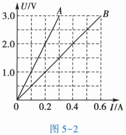 4. 如图5-2所示是导体A、B的U-I图像。由图可知,导体的电阻一定时,通过导体的电流与导体两端的电压成