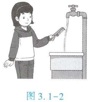 4. (★★)用在干燥的头发上梳过的塑料梳子靠近细细的水流,会观察到如图 3.1 - 2 所示的惊奇的现象。这是由于梳子摩擦后