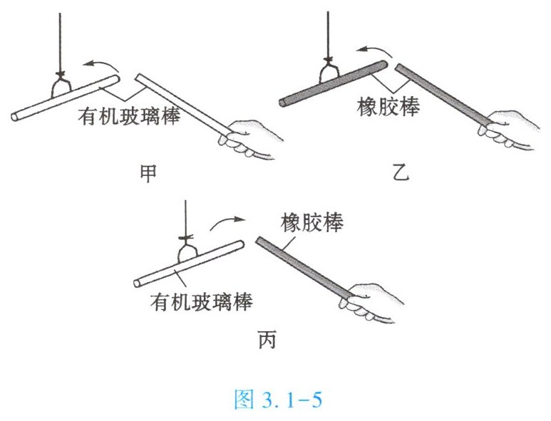 (3)如图 3.1 - 5 丙所示,将用丝绸摩擦过的有机玻璃棒和用毛皮摩擦过的橡胶棒相互靠近,发现有机玻璃棒和橡胶棒相互