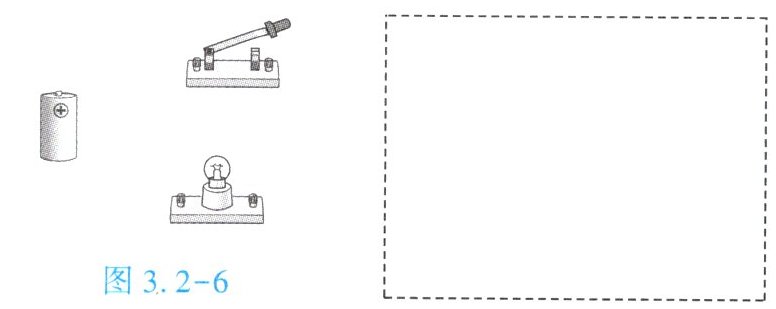 7. (★★)如图3.2-6所示,用笔画线表示导线将这些电路元件连接起来组成实物电路,并在虚线框中画出电路图。