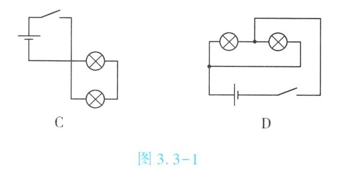 2. (★★)(双选)如图 3.3 - 1 所示的电路图中,属于串联电路的是【 】