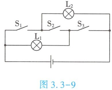 6. (★★★)如图 3.3 - 9 所示的电路图中,若闭合开关 $ S_2 $,断开开关 $ S_1 $ 和 $ S_3 $,则小灯泡 $ L_1 $、$ L_2 $ 的连接方式为