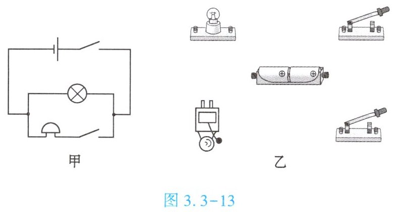 10. (★★★)按照图 3.3 - 13 甲所示的电路图,将图 3.3 - 13 乙中各元件连接起来。(用笔画线表示导线,导线不能交叉)