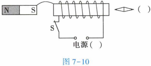 16. 电磁铁通电后,小磁针静止时的指向如图7-10所示。请标出:
