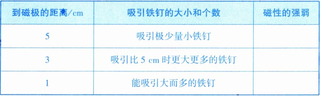 |到磁极的距离/cm|吸引铁钉的大小和个数|磁性的强弱|
