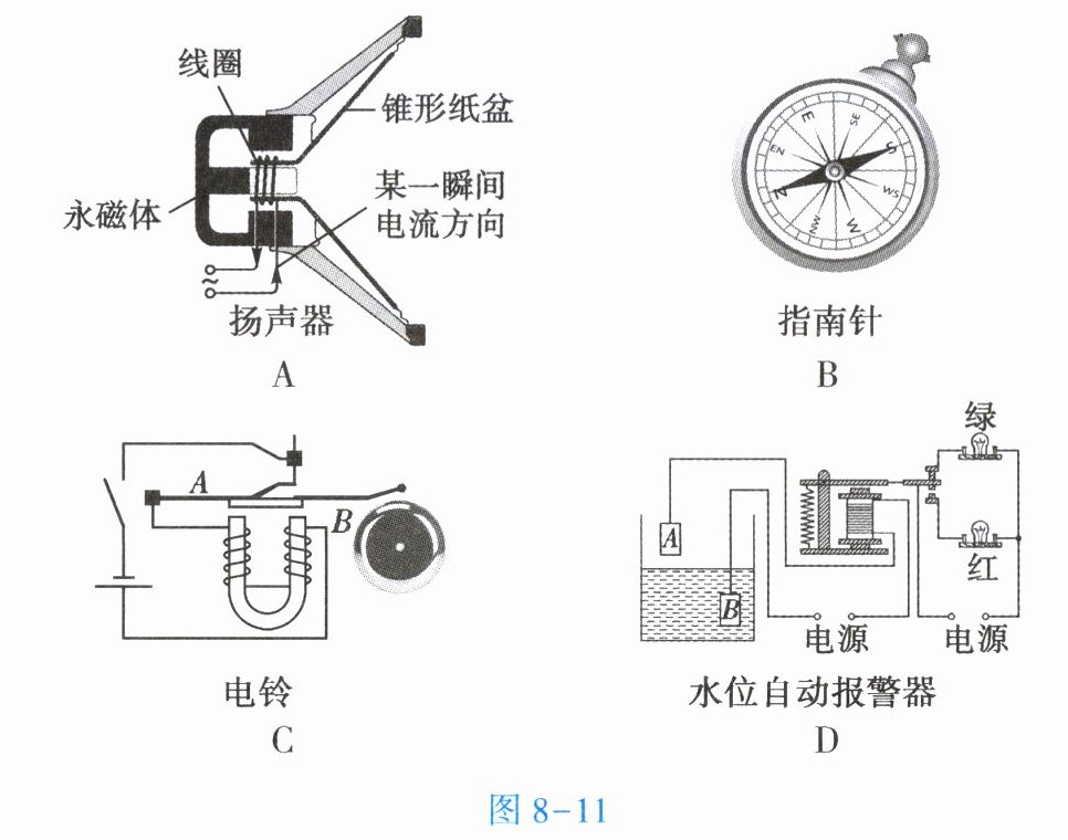 11. 如图8-11所示的四种设备中,有一个工作原理与其他三个明显不同,这个设备是 【