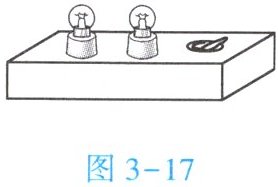 17. (★★★)如图3-17所示是一个封闭的电路盒,盒面上有两只灯泡和一个开关,拨动开关,两只灯泡或一齐亮,或一齐灭。