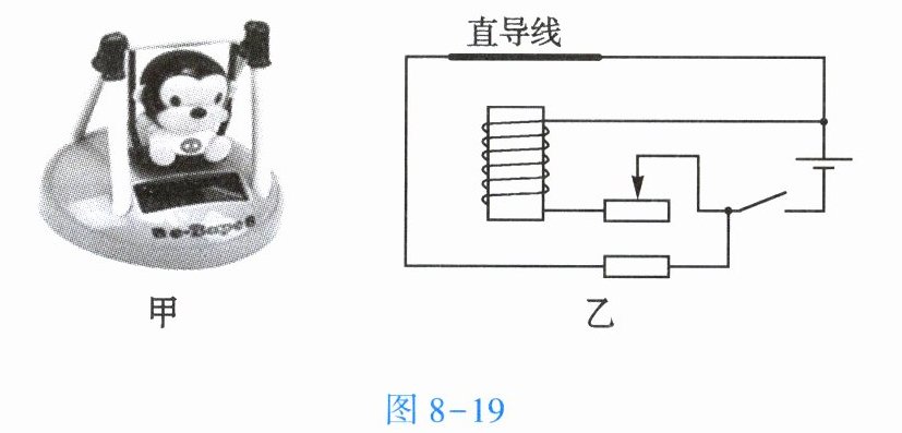 20. 如图8-19甲所示为猴子荡秋千的游戏装置,闭合开关后,猴子就会绕上方的横梁往复振荡,其内部电路基本结构如图8-19乙所示(实现往复振荡的电路,图中未画出)。