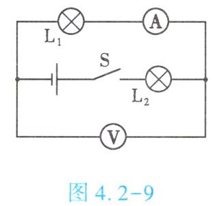 9. (★★)如图 4.2 - 9 所示,开关 S 闭合后,两灯均发光,电压表测的是灯泡