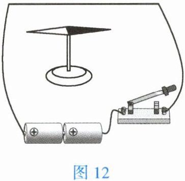 18. 如图 12 所示是奥斯特实验,闭合开关,原来静止的小磁针发生了偏转,造成小磁针偏转的原因是什么呢?
