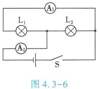 1. (★★)如图 4.3 - 6 所示的电路图中,电流表的示数分别为 0.45 A、0.25 A,则通过灯泡$ L_1 $的电流为