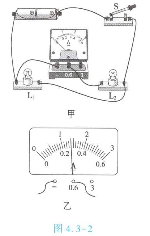 (填$“L_1”$或$“L_2”)$的电流;电流表的示数如图 4.3 - 2 乙所示,为0.3