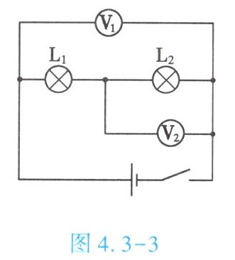 5. (★★)如图 4.3 - 3 所示,当开关闭合后,两灯都发光,此时电压表$ V_1、$$V_2 $的示数分别是 4 V 和 2.5 V,则电源电压为