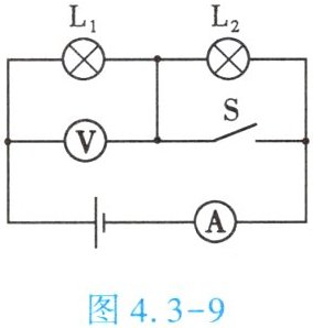 4. (★★★)如图 4.3 - 9 所示,灯泡$ L_1 $和$ L_2 $的规格相同,电源电压合适且恒定,开关 S 由闭合到断开,电路中【