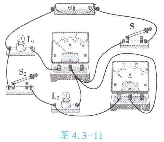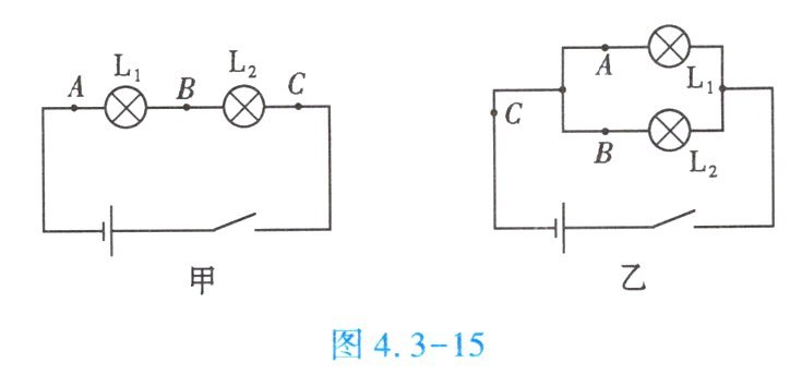 (2)①把上述两只小灯泡改接成并联后,接到另一电源上,使小灯泡发光(如图 4.3 - 15 乙所示)。
