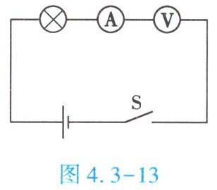 8. (★★)将完好的电流表、电压表、小灯泡连接成如图 4.3 - 13 所示的电路图,各处接触良好,当开关 S 闭合后,会出现【