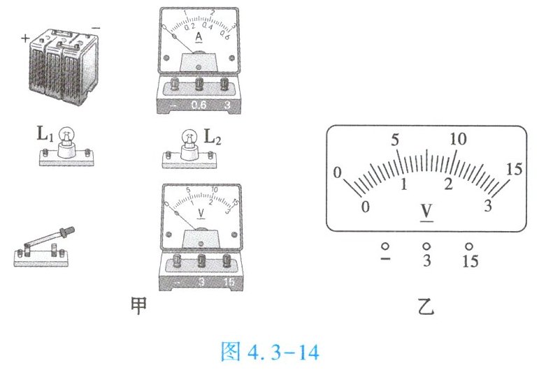 (1)①把两只标有“2.5 V 0.3 A”字样的小灯泡 L_1 和 L_2 串联起来接到电源上,使小灯泡发光(如图 4.3 - 15 甲所示)。