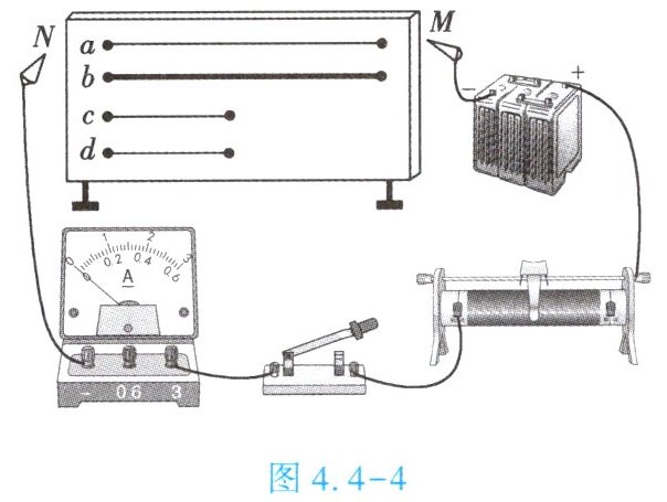 有关。(2)如图 4.4 - 4 所示是三位同学为上述探究活动准备的实验器材,他们已经完成了部分实物的连接,若电阻受温度的影响可以忽略,要探究猜想①,应该控制
