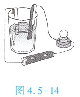 10. (★★★)小金同学自制一个水变阻器,如图 4.5 - 14 所示。将两个材料相同的金属片固定在容器中,用导线将电路连接。