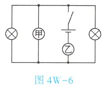 6. (★★)如图4W-6所示,闭合开关后两灯均能发光,则【